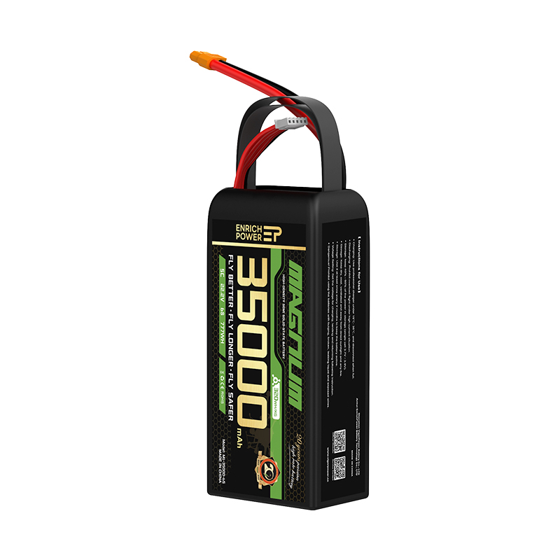 Built for pesticide spraying, our batteries feature a 'nano-level anti-corrosion coating' to resist chemical erosion and prolong lifespan. With '25C instantaneous discharge', they support frequent takeoffs/landings and heavy payloads, boosting daily coverage by '25%'. A 'proprietary electrolyte formula' reduces internal resistance, keeping operating temperatures below '40°C' even during continuous use. Waterproof housing and customizable cell configurations fit multi-rotor and hybrid-wing drones, driving smart agriculture.
